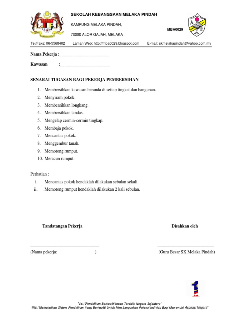 Senarai Tugas Pekerja Pembersihan Tukang Kebun Pdf