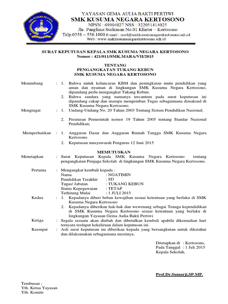 Contoh Tugas Dan Fungsi Tukang Kebun Sekolah Antapedia Com